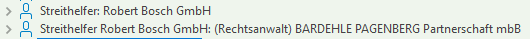 Rechtsanwälte von Beteiligten werden wie folgt angelegt: