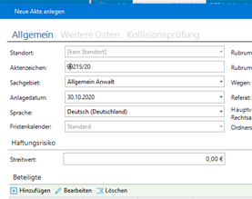 Man kann dann im Feld unten sehen als was der Beteiligte in welcher Akte angelegt ist. Das Ergebnis der Kollisionsprüfung müsste in einem solchen Fall mit "es liegt eine Kollision vor" vermerkt werden.