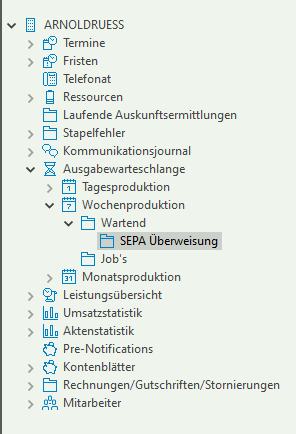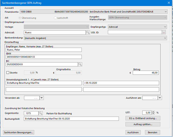 Überweisungen werden von DuA eingegeben und in dem Buchhaltungsordner abgeheftet.