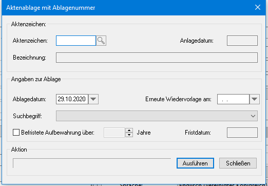 - Als Ablagenummer nehmen wir immer die 99-er Akte, die Unterakten werden dann automatisch mit abgelegt und erhalten auch alle unterschiedliche Ablagenummern.,