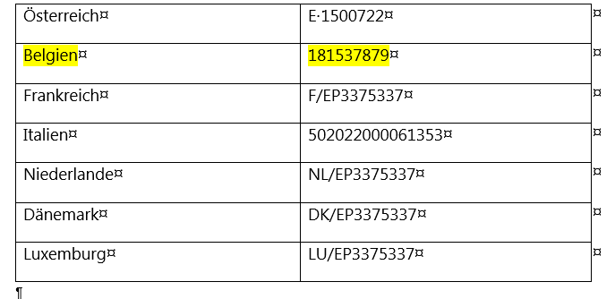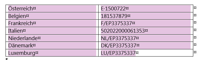 - Patentabsätze immer ohne eckige Klammern zitieren, also Abs. 0001 und 0002 und gerne das Wort "Absatz" mit Abs. abkürzen.
