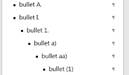 Passt Aufzählungsebene (Bullet) der vorherigen Textebene an bzw. formatiert in Rn-Text. Bullet-Points sind immer ohne Randnummer. Möglich bis Überschriften-Ebene (1). |