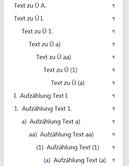 Aufzählungs-Ebene passt sich der vorherigen Überschriften- bzw. Textebene an (immer ohne Rn). |