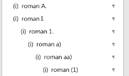 Passt Aufzählungsebene (i) der vorherigen Textebene an bzw. formatiert in Rn-Text. (i)-Text ist immer ohne Randnummer. Möglich bis Überschriften-Ebene (1). |
