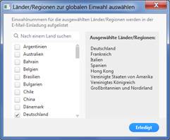 Es öffnen sich Optionen für die Telefonkonferenz. Unter "Bearbeiten" können die Einwahldaten für die Teilnehmer aus den entsprechenden Ländern/Regionen angepasst werden